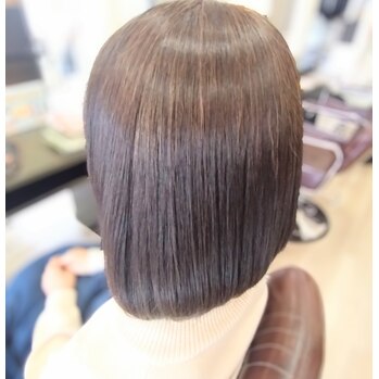 そんな時は、縮毛矯正がおすすめです!根元から毛先まで自然なストレートに整えてくれます。指通りがなめらかになり、朝のセットもぐっとラクになりますよ♪