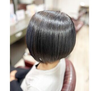 メッションを入れておくと白髪が目立ちにくく、オシャレカラーなのでとても人気のカラーです。ショートから伸びてきてボブになっているのを生かしてカット。もちろんドライブだけでセットは決まります!ドライ前は必ず流さないトリートメントは必須ですよ!...